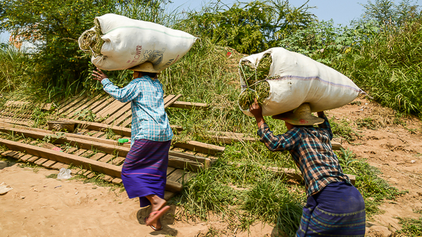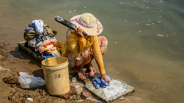 dings nicht allzulange auf und fahren mit dem Boot auf die andere Seite, wo die Pferdekutschen auf uns warten. Das Leben am Fluss fasziniert mich. Frauen, die mit einem dicken Holz ihre Wäsche bearbeiten eine schwere Arbeit. Noch schwerer ist es, diese Säcke auf dem Kopf die Böschung hochzutragen. Eine