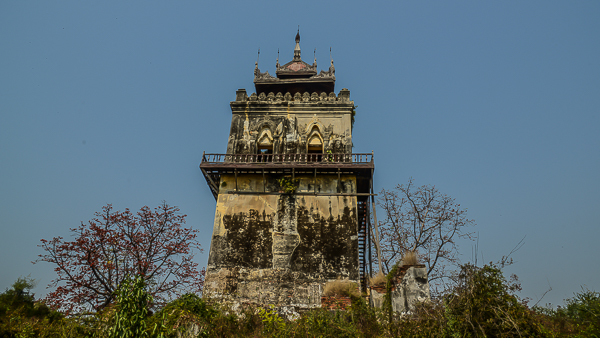 zu sehen. Unser Pferdchen bringt uns durch Felder und nicht befestigte Wege zu einem Aussichtsturm, dieser Turm wurde bei einem Erdbeben von 1838 stark beschädigt und steht nicht mehr grade. Er wird deshalb auch der Schiefe Turm von Ava genannt. Schwer zugänglich ist dieser Turm, denn wir wollen