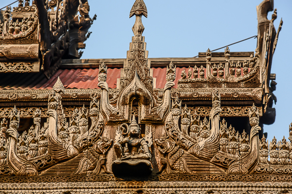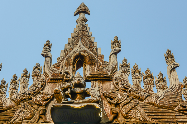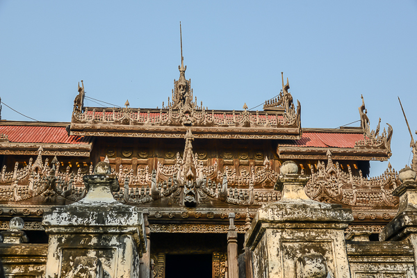 Wir sind wieder unterwegs in Mandalay. Südöstlich der Kyauk-taw-gyi befindet sich dieses wunderschöne Kloster - Das Shwe-nan-das-Kyaung, das goldene Palastkloster ist das einzige Palastgebäude, das die britischen Granaten überlebt hat. Das Kloster gehörte ursprünglich zu den