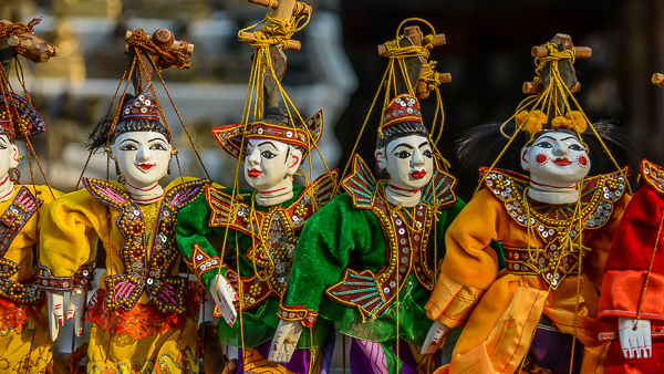 stände rechts und links. Garküchen und viele Souveniers. Besonders fallen uns hier die Marionetten auf, die sehr schön gearbeitet sind. Ein farbenfrohes Bild. Schade das wir die Marionetten nicht mit Leben erfüllen können.