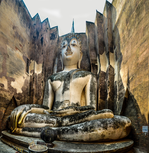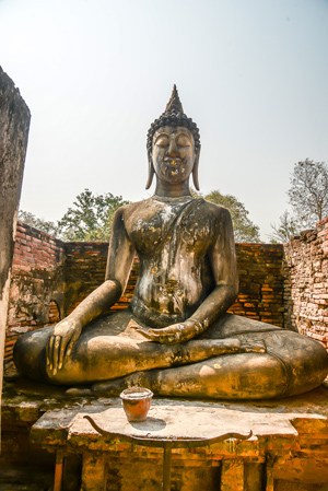 | In ihm befindet sich eine riesige sitzende Buddha Statue in der Bhumisparsa-mudra, die etwa 11 Meter breit und 15 Meter och ist. Diese Figur ist wahrscheinlich Phra Achana, der in einer Steinschrift, der so genannten Inspription I, von König Ram Khamhaeng erwähnt wurde. Sie ist das größte erhaltene |