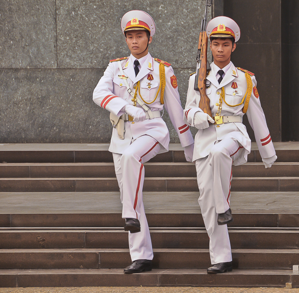 Sie haben uns dann doch noch hineingelassen - wir sind wieder beim Ho Chi - Minh - Mausoleum und werden den großen Führer anschauen. Es ist eine beachtliche Schlange von Menschen, die diszipliniert in einer Reihe warten, wir werden immer wieder von Soldaten ermahnt, uns still zu verhalten. Klar machen