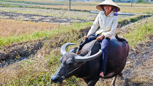 Wasserbüffel an der Straße - so kommt auch Geld in die Kasse