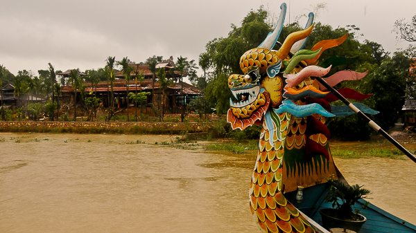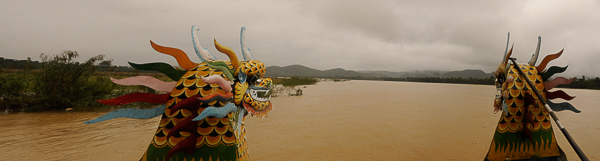 Nach dem vielen Regen sind wir wieder auf dem Drachenboot - einigermaßen vor dem Regen geschützt und fahren Richtung Hue auf dem Parfüm Fluss, der auch noch die o. g. Namen trägt. Fluss der Wohlgerüche, Duftfluss oder aber Parfümfluss ist ein langsam fließender Fluss in der zentral-