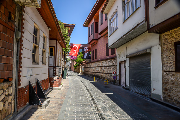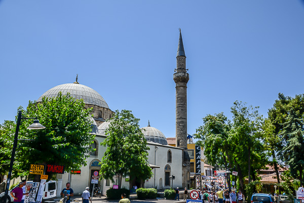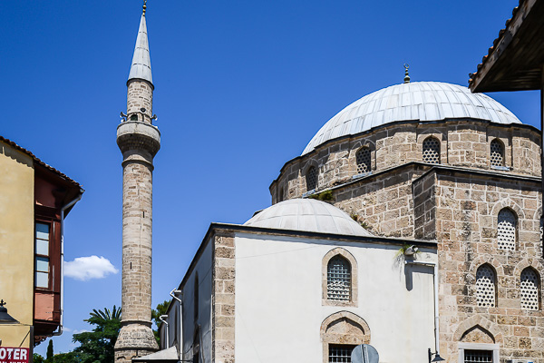 | Gute und gehe weiter. Es dauert nicht lange, die Straßen werden wieder breiter, die Autos fahren wieder und es erhebt sich die Moschee von Antalya. Klar das ich sie besuche. Die Schuhe aus, das kenne ich ja |