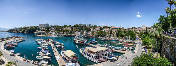 | kleine Tour. Wir klettern dann die Treppen hinauf in den Recep Bilgin Park mit einer tollen Aussicht auf den Hafen mit seinen Schiffen. Ist doch klar - ein Panoramabild muss her. Es finden sich viele Lokale und |